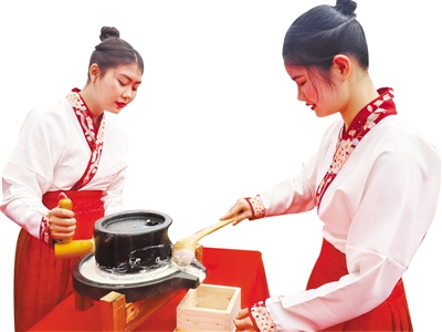 活动现场,8座石磨错落有致地摆放着,仿佛在诉说着古老的农耕文化。而舞台右侧,一个壮观的石磨方阵吸引了众人的目光。3座大石磨与88座小石磨整齐排列,组成一幅震撼人心的画面。活动开始,百人齐聚,共同推动磨盘,金黄的豆子在磨盘间翻滚,不一会儿,乳白色的豆浆便从磨盘间缓缓流出,醇厚的豆香瞬间弥漫整个现场。
