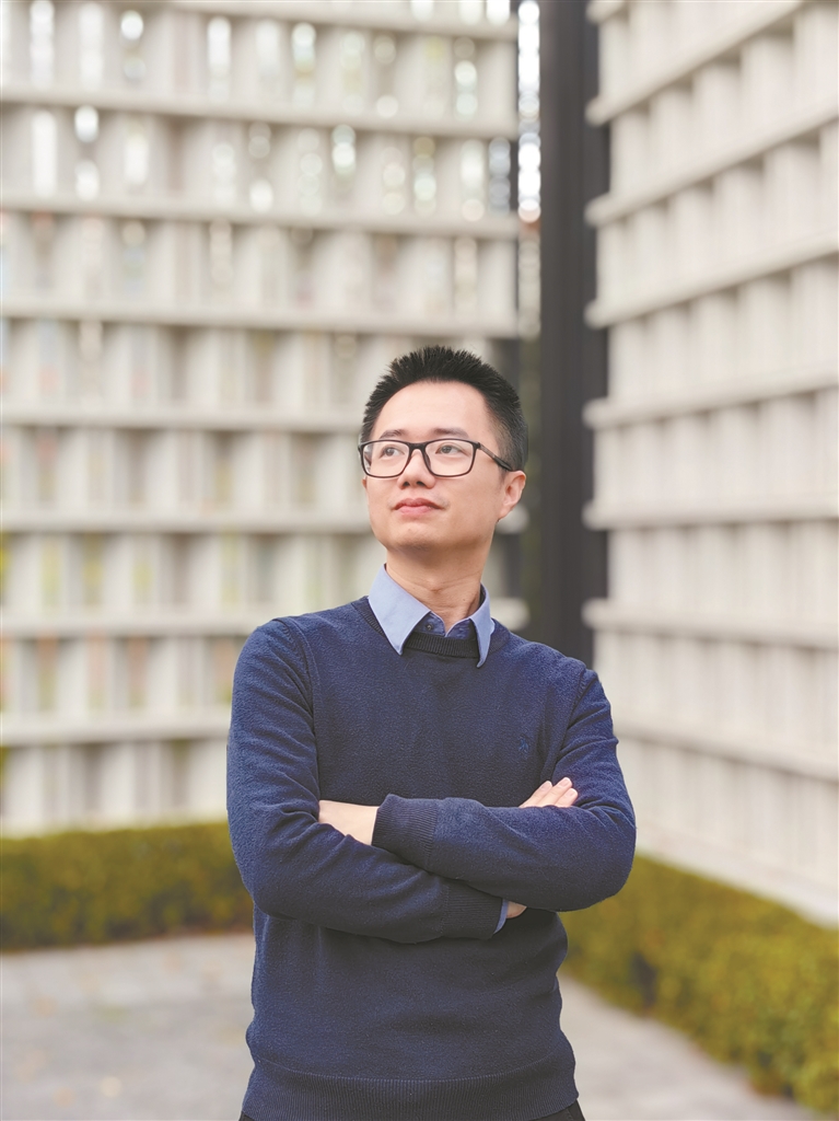 彭健彬是大朗镇黎贝岭村人,目前在东莞市道路路政所担任副所长,近日他回到黎贝岭村接受了记者采访。作为一位原创音乐人,他擅长将东莞方言融入流行音乐创作之中,工作之余还积极传授和保育东莞方言,其制作的视频《东莞话课堂》播放量超过一百万次。正如其微信名“音乐诗人”一样,彭健彬以方言音乐等为载体执着守护地方文化基因,唤醒东莞人的“集体记忆”。