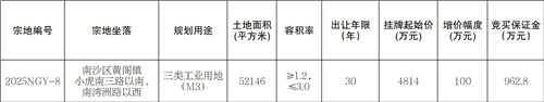 广州市规划和自然资源局南沙区分局2025NGY-8号地块国有建设用地使用权网上挂牌出让公告