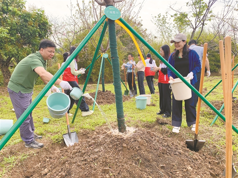 市民亲手栽种广州樱。