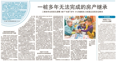 然而,要帮老人完成这桩心愿并不容易。马婆婆的继子20多年前便杳无音信,在此情况下,如何帮助马婆婆完成继承?这无疑是一个艰难的任务。在此过程中,马婆婆有期待也有担忧,好几次向记者打来电话倾诉。