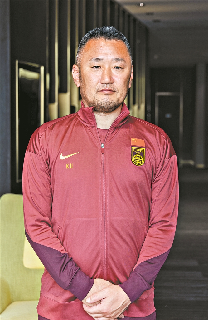 上村健一已经在中国工作了6年,他2020年抵达中国的首站正是广州,当时他出任广州富力足球俱乐部U14梯队教练。上村健一对广州足球青训情况十分熟悉,他专注于职业俱乐部梯队建设,对广州校园足球的状况和业余青训赛事也了如指掌——如今国少队阵中唯一来自校园足球的球员就是出自广州华附的闫宇喆。“我在广州有很多朋友,这是一个非常宜居的城市。通过对广州校园赛事的观察,我发现闫宇喆是一名很有特点的中场球员。中国校园足球的训练强度并不高,闫宇喆能入选国字号球队完全是因为他个人特别勤学苦练。”上村健一说。