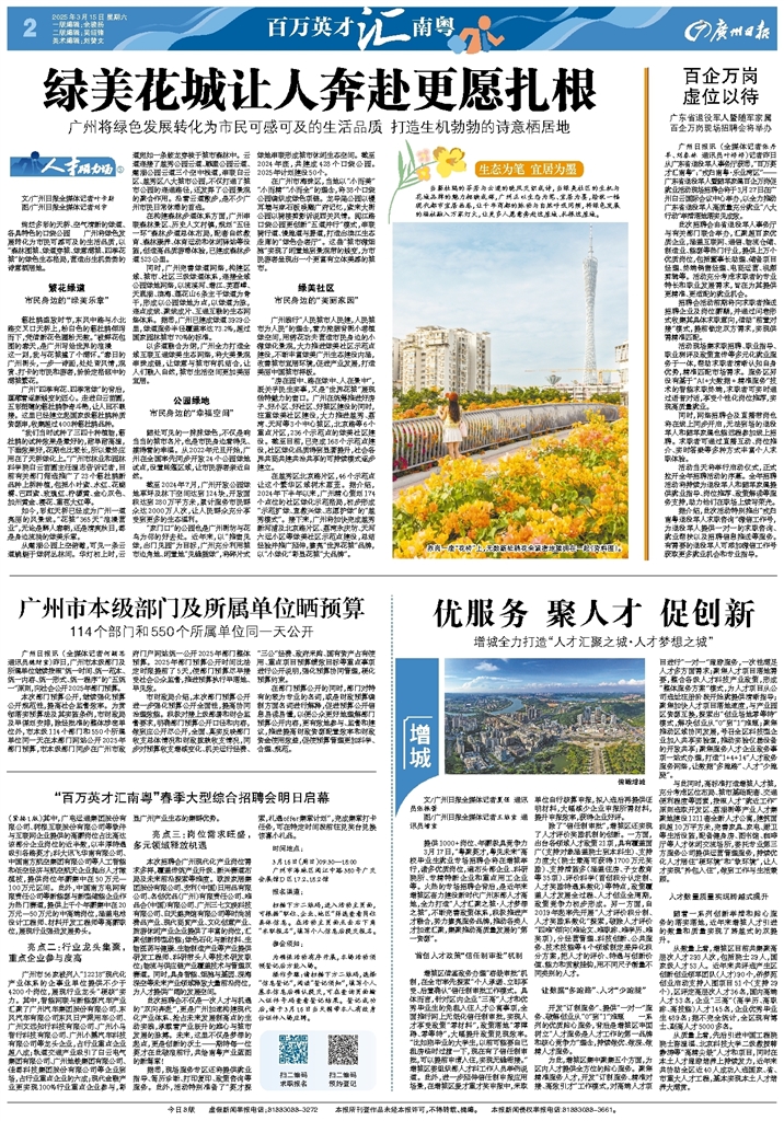 - 优服务 聚人才 促创新 增城 文/广州日报全媒体记者夏强 通讯员张振蕾 图/广州日报全媒体记者王维宣 通讯员增宣 提供1000+岗位、年薪极具竞争力……3月17日,“粤聚英才,粤见未来”高校毕业生就业专场招聘