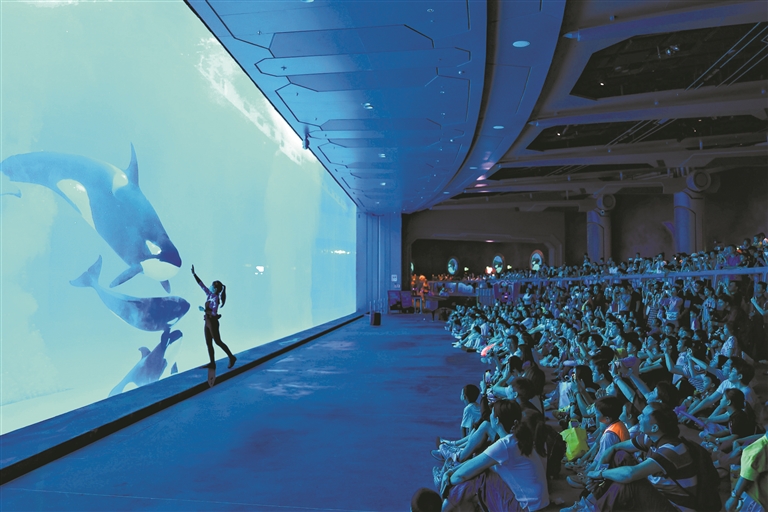 作为世界上最大的室内主题乐园,长隆飞船乐园在试运营期间即创下七项吉尼斯世界纪录。在这里,游客不仅可在“虎鲸科普剧场”近距离欣赏虎鲸的霸气与萌态,还能在“鲸奇宇宙”观看“深海虎鲸奇遇”,见证虎鲸家族在水中自由穿梭、跳跃、翻滚的身姿。唯美可爱的“美人鱼梦幻秀”、探索光影奥秘的“水之光秀”、讲述水獭奇幻故事的“童趣亚马逊”等主题演艺更让游客饱足眼福。在颇具氛围感的“鲸生鲸世”主题餐厅,游客可以与虎鲸一起共享美食与专属的浪漫时光。“百慕大历险”“深海潜艇”“飞船总动员”“古海幻行”等几十台大型游乐设施,更让人仿佛置身于一个奇幻的海洋世界,充满了科技感和未来感。
