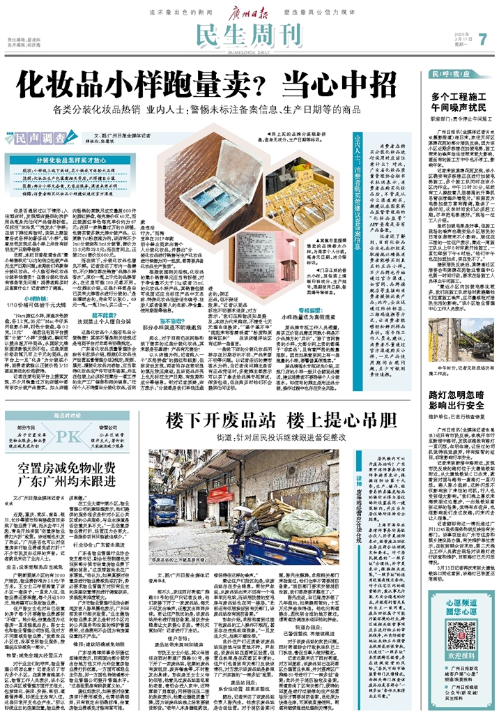 - 楼下开废品站 楼上提心吊胆 文、图/广州日报全媒体记者周伟良 前不久,家住西村街道广雅路80号的住户向记者反映,他们家楼下开了一家废品站,每天不仅发出噪声,还散发出阵阵异味。更让住户担忧的是,该废品站并未进行消防备案,消
