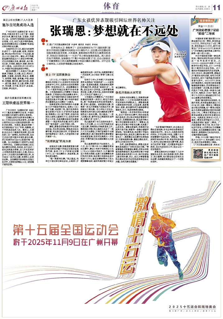 - 张瑞恩:梦想就在不远处 文、图/广州日报全媒体记者 孙嘉晖 通讯员 李建艺 李绍政 世界名帅大卫·泰勒来了!这则消息顿时为ITF(国际网联)国际女子网球巡回赛深圳光明站W50增色不少,这位澳大利亚著名网球教练曾执教辛