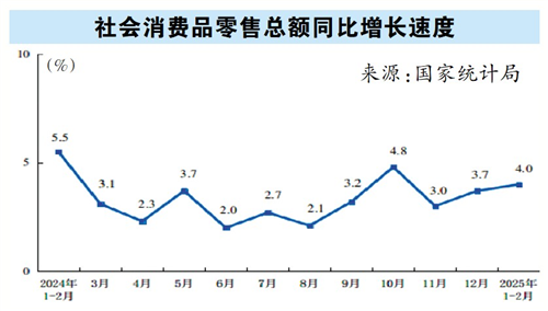 广州日报讯 (全媒体记者 赵方圆、龙乐乐)3月17日,国家统计局公布1~2月国民经济运行情况。记者注意到,前两个月,社零总额同比增长4.0%,其中全国网上零售额同比增幅达7.3%。房地产销售端和开发投资端等多项数据呈现积极信号。业内分析称,消费者信心指数已连续三个月回升,预计一季度国内需求有望逐步扩大。