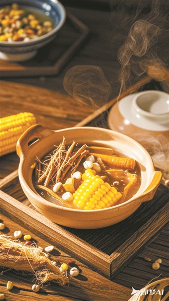 比如五指毛桃,俗称“五爪龙”,是广东的草药,也被称为“广东人参”,是老广爱用的煲汤料。其功效与黄芪相似,既能祛湿,又可益气健脾补虚、舒筋活络。搭配薏米、扁豆,以及清热利湿的玉米须,用来煲补中益气、强壮筋骨的鹌鹑,既能强身健体,也可作为春夏湿热天气的保健汤水,达到健康塑形的效果。