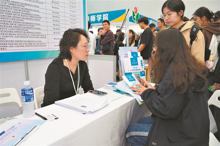 在广东海信电子有限公司招聘展位前,来自华南师范大学光电科学与工程学院的原昊正与工作人员详细交流。“目前人工智能应用越来越广泛,我将结合专业所长,运用专业知识让人工智能更好地赋能制造业发展。”原昊表示,江门为毕业生提供了覆盖求职、就业、创业的全链条补贴政策,这非常有吸引力,感受到了江门对人才的重视。