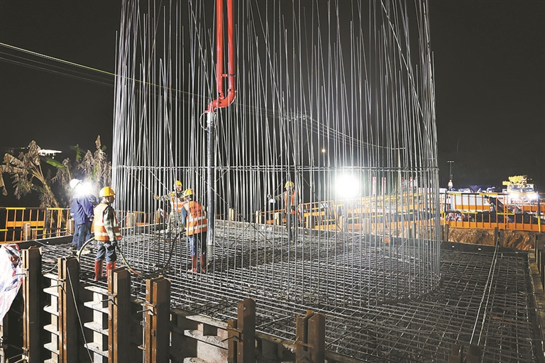 广州日报讯 (全媒体记者黄庆 通讯员邓联旭、黄诗伟)昨日凌晨,经过4小时的连续奋战,由厦深铁路广东有限公司建设、中铁二十五局承建的武梅铁路广东段梅州西跨梅汕客专特大桥30号墩承台浇筑完成,标志着广东段首个承台完成浇筑,为后续施工的加速推进奠定坚实基础。