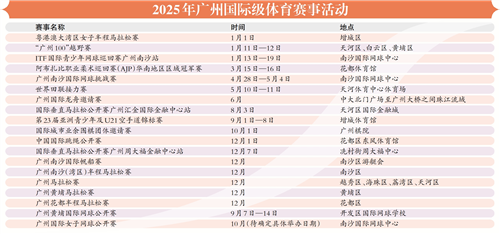 据悉,广州编制出台“广州体育强市建设规划”“体育发展‘十五五’规划”,着眼体育领域改革创新要求和城市体育发展需求结构变化,加强体育强市建设系统性、长远性谋划。