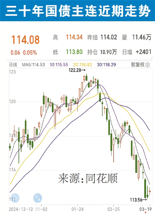 广州日报讯 (全媒体记者 王楚涵)3月19日,反映国债价格变动预期的国债期货收盘多数下跌,10年期主力合约跌0.07%,5年期主力合约跌0.09%。记者了解到,在资金面偏紧、股债“跷跷板效应”等多重因素影响下,今年以来债券市场出现一定幅度的调整。有业内人士分析,债市大概率将维持震荡行情。债市走弱或利好资金流向股票等资产。