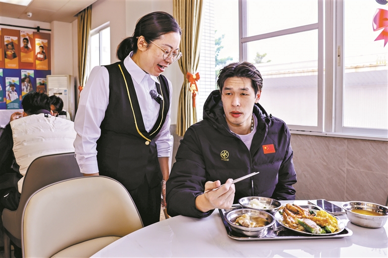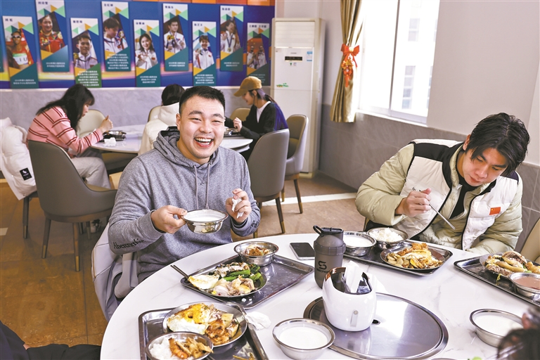 训练中心的运动员来自五湖四海,对于如何解决“众口难调”的问题,陈明解释:“我们与运动队伍一直保持良好沟通,全面考虑运动员的口味偏好和饮食需求,不断调整菜品,增加受欢迎餐食品种的供应频次,确保运动员在享受美味的同时,还能摄入全面的营养,为他们的训练备战注入源源不断的动力。”