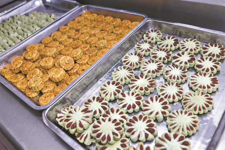 “红豆馅、紫薯馅、冬瓜蓉甚至鸡仔饼里的‘冰肉’馅儿都是我做的。”何正路从冰柜里端出一盆白砂糖,从中翻出一块正在腌制中的“冰肉”。经过糖和酒腌制一周,这些“冰肉”才被做成鸡仔饼。