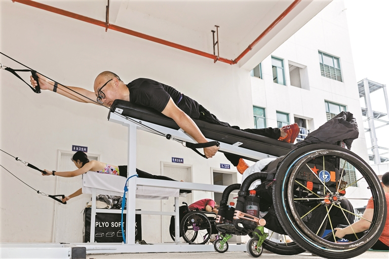春天的广东,草木葳蕤,阳光明媚。肇庆市体育馆的田径场上,他们奔跑着,摇着竞速轮椅,骑着自行车呼啸而过,投下长长的影子。