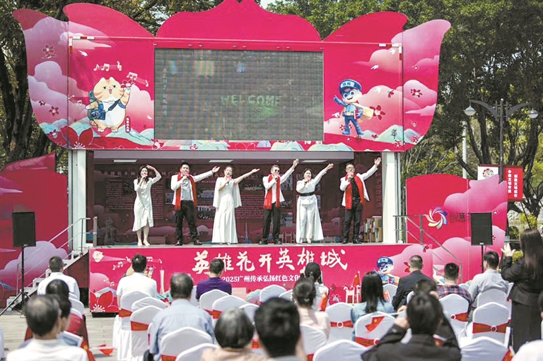 广州海珠广场,木棉花正盛放。昨日,“英雄花开英雄城”2025广州大篷车巡展越秀区专场暨“越学·思践”宣讲活动在海珠广场开展。本次广州大篷车巡展越秀区专场活动以流动展览的形式宣传越秀红色文化,通过舞台展演、主题宣讲、互动市集等形式,为市民游客带来一场英雄音乐会、英雄故事会、英雄影像会和英雄文创会。