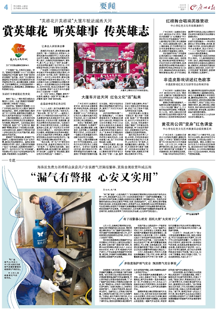 - 黄花岗公园“变身”红色课堂 广州日报讯 (全媒体记者 黄庆)为传承红色基因、赓续红色血脉,广州举办“英雄花开英雄城”中小学生红色文化艺术展演活动。3月22日上午,中星小学携手黄花岗公园,在该公园“浩气长存”牌坊前开展“红棉舞