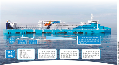 “以前养鱼像‘靠天吃饭’,现在成了‘带着鱼缸闯海洋’。”珠海市海洋集团副总经理苏庆龙介绍,“湾区伶仃”号的养殖模式为全球首创,采用了多项创新技术。在船体结构创新上,它采用全球首个船型首尾与柱稳式框架钢结构船身融合构型,创新结合船舶和深远海钢制网箱技术,同时独创水体自然交换技术,能够实现自然海水零污染循环,为养殖鱼类创造“准野生”生长环境,在提升渔获品质的同时,又能节省巨大换水能耗。“湾区伶仃”号还使用太阳能、风能等清洁能源,能够大幅降低日常运营的能源成本,并实现锚泊零碳养殖。