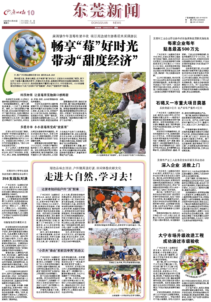 - 畅享“莓”好时光 带动“甜度经济” 文、图/广州日报全媒体记者马骏 通讯员金麻、荔香 翠枝缀玉蓝,果香沁满园,何不畅享“莓”好时光?记者昨日从麻涌镇了解到,眼下又到了蓝莓大量成熟的季节,该镇创艺生态园、蓝莓星球等园区的蓝莓挂满果