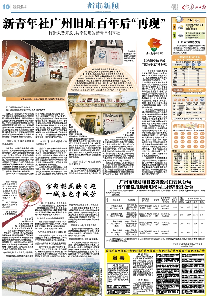 - 新青年社广州旧址百年后“再现” 文/广州日报全媒体记者廖靖文 图/广州日报全媒体记者廖靖文、王燕 通讯员钟涌 阳春三月,红棉怒放,作为广州红色文化传承弘扬示范区的越秀核心片区范围内再添一处红色场馆。昨日,位于中山五路昌兴