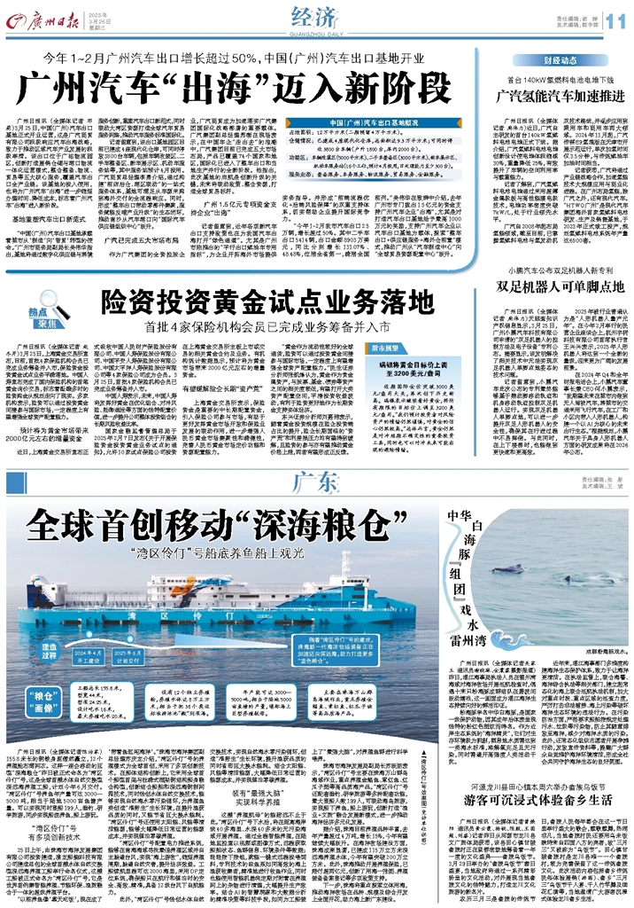 - 广州汽车“出海”迈入新阶段 广州日报讯 (全媒体记者 邓莉)3月25日,中国(广州)汽车出口基地正式开业运营,这是广汽商贸有限公司积极响应汽车出海战略,致力于推动区域汽车产业发展的积极举措。该出口位于广祐物流园区,创新打造