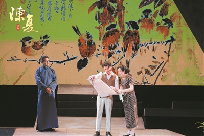 《陈复》3.0版中,陈复与陈树人的四场父子戏,层层递进,演绎出革命时期的中国式父子关系。全剧尾声,当陈树人听闻儿子牺牲噩耗,颤抖着抚摸儿子遗物,以《为陈复惨被掳杀报告书》一文痛斥反动当局,悲痛挥毫写下《哭子复》诗八首。父子二人“志在复兴”的殊途同归,成为全剧情感浓度最高的“泪点”。