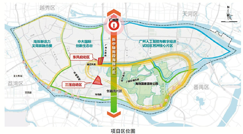 两个启动区位置绝佳,毗邻海珠湿地和海珠湖,广州大道南从两个起步区中穿过,改造范围内有地铁11号线以及规划中的地铁26号线。