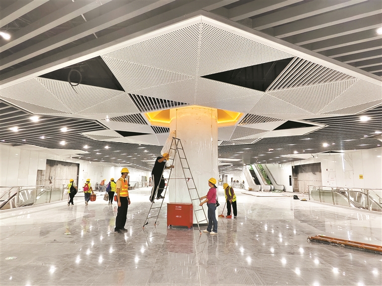 广州日报讯 (全媒体记者李天研 通讯员陈虎辉、许舒凡、叶锦宇)地铁十号线与十二号线作为广州城市轨道交通线网“X”对角线,双双进入运营调试的冲刺阶段。3月26日,记者先后来到五凤站、西塱站探营,了解十号线的建设进度,抢“鲜”打卡新线的主题车站。十号线西塱至广州大道中段预计年内建成开通。