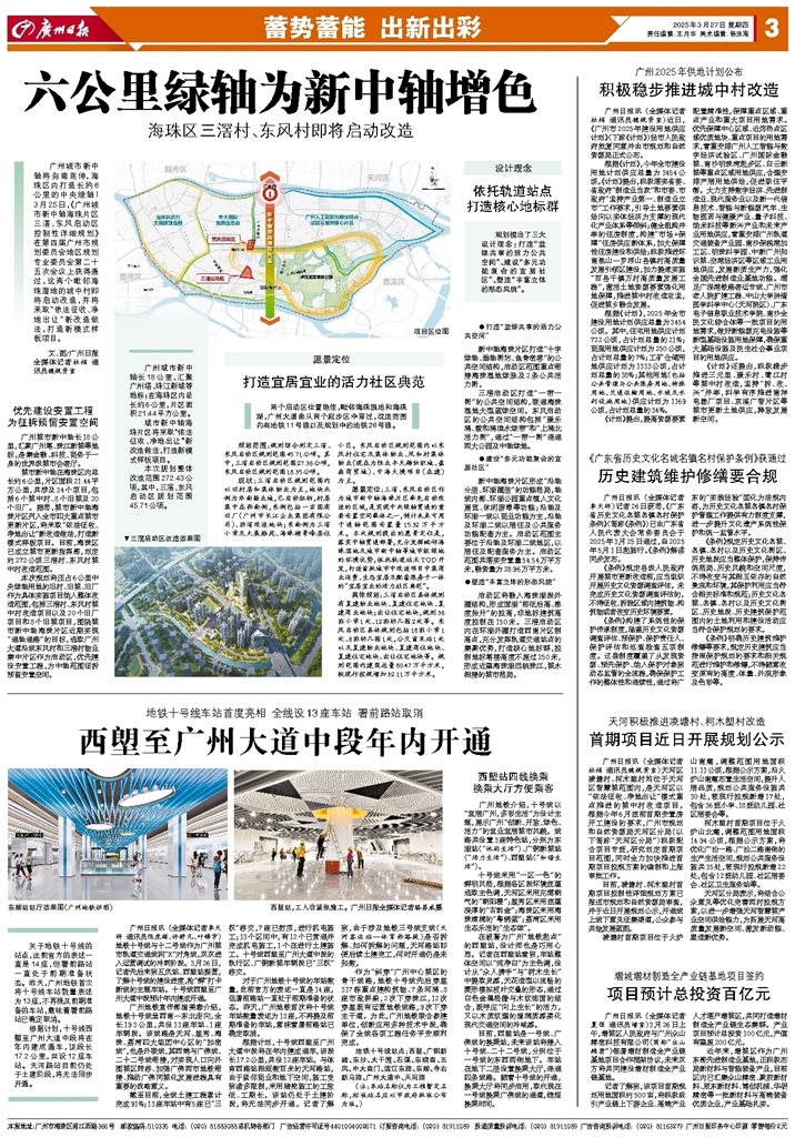 - 六公里绿轴为新中轴增色 广州城市新中轴将向南延伸,海珠区内打造长约6公里的中央绿轴!3月25日,《广州城市新中轴海珠片区三滘、东风启动区控制性详细规划》在第四届广州市规划委员会地区规划专业委员会第二十五次会议上获得通