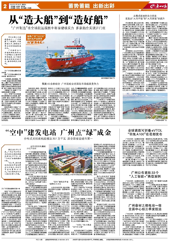 广州船舶工业的竞争力,还源于其全产业链的深度融合与创新生态的持续优化。从设计研发到高端制造,从配套服务到全球市场,广州构建了全产业闭环,而技术创新是这一闭环的核心驱动力。以中船黄埔文冲为例,2024年与2023年相比,在完工量保持稳定的前提下,工业产值突破200亿元,较2023年增加22%,创历史新高。“这就意味着广州造船企业高科技含量上去了,产业的附加值得到了提升。”陈建榕介绍,广州造船产业经历了从集成组装到自主设计的阶段,尤其是近两年来,一系列先进船型的交付,更让广州造船产业实现了从“大而不强”到“大而更强”的跃升。