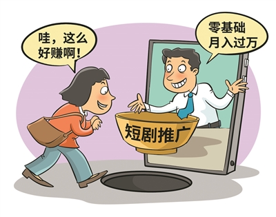 短剧推广真能轻轻松松“月入上万”吗?从“轻松赚外快”的刷单返利陷阱到剪辑培训骗局,再到如今“宝妈在家就能做”的短剧推广骗局,不法分子不断变换话术,但万变不离其宗,始终是利用人性弱点制造“躺赚”幻象,通过信息差“收割”消费者。对于这些“速成神话”“暴富真经”,消费者要擦亮双眼;平台也要建立事前防御体系、强化内容审核、畅通举报通道,让坑人的机构无空子可钻。    (傅雯慧)