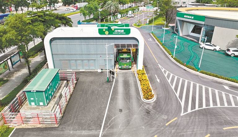 借助清运服务平台完成居民装修垃圾规范处置,是广州城管构建的“产、运、处、用”全链条收运体系的重要一环。在收集环节,广州搭建“穗云智慧城管”等多个清运服务平台,由专业清运公司为居民提供上门服务;贮存环节,在确保每条街(镇)至少设置1处装修垃圾临时收集点的基础上,推进建设具有装修垃圾、生活垃圾、低值回收物综合收集功能的资源收集中心,目前全市共设置装修垃圾临时收集点300余处;清运环节则逐步规范清运市场,督促专业化运输企业使用专用密闭车型。同时,引入低碳低噪的新能源运输车辆,引导运输行业实现绿色转型。目前约有纯电新能源车156台、氢能源车105台投入运营;而在处置环节,广泛应用装修垃圾处理再生利用模式,避免装修垃圾倾倒侵占土地、污染环境。