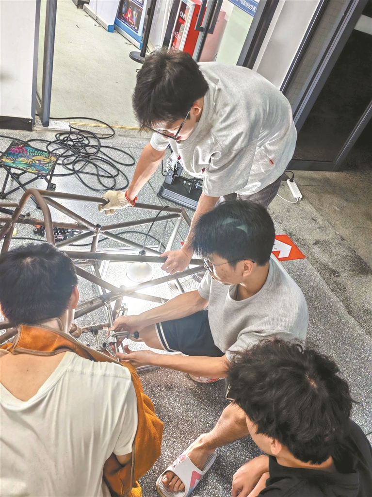 但起步并没有那么容易。场地、经费、管理……各种各样的问题让队伍渐渐分散。一个多学期后,仅有五名成员坚持下来,“造车梦”似乎又回到原点。“这次挫折让我意识到,团队管理远比我想象中复杂。值得庆幸的是,留下的成员展现出惊人的韧性,大家能积极地重新组织队伍,寻找可能的发展机会。”林振锋说。