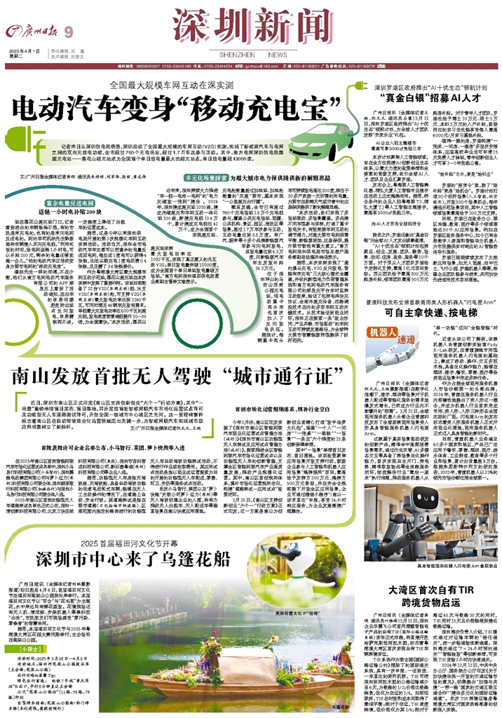 - 电动汽车变身“移动充电宝” 记者昨日从深圳供电局获悉,深圳启动了全国最大规模的车网互动(V2G)实测,实现了新能源汽车与电网之间的双向充放电功能,全市超过760个充电场站,超过1.7万车次参与活动。其中,南方电网深圳供电局