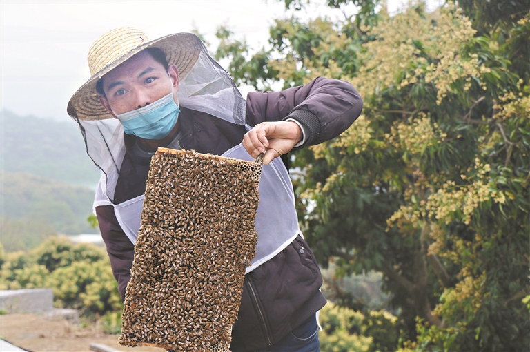 “荔枝蜜是四大名蜜之一,花香味浓郁、甜而不腻。每次我带着我的蜜蜂来到这里,都能采集到很优质的荔枝蜜。”陈桂成说,选择大朗是因为这里盛产荔枝,而且今年的荔枝花开得特别好。