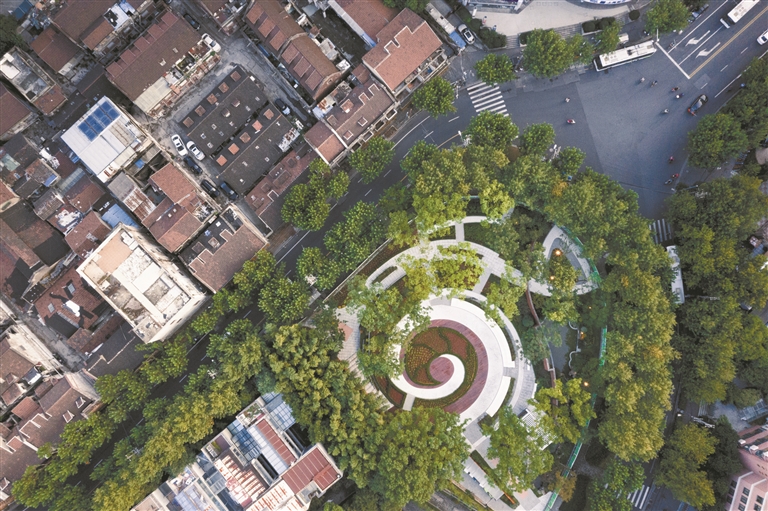 记者在江苏路延安西路路口的“华山新语”看到,这座以“新时代文明实践”为主题的口袋公园里,几位老人坐在弧形座椅上闲话家常,环形健身步道上年轻人慢跑而过,叶语亭旁的天桥电梯缓缓上升,载着轮椅上的居民穿过天桥……这些镶嵌在城市肌理中的“绿色明珠”,正书写着人民城市的幸福答卷。
