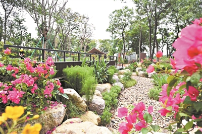 在整个改造过程中,建设单位坚持不作大改动的原则,不但尽可能维持原先的土坡地势,还在保留原有乔木的基础上,内栽了近50多种耐水的岭南花草。随着公园的建成,这里已是绿树成荫,每天都吸引不少市民前来休憩游玩,“以前大家路过这里都径直走过去,现在有的市民会专门进来走走,周边幼儿园的老师也会带着小朋友们过来游玩。”工作人员介绍,附近来休闲的老人对公园的建成很满意,他们表示,从小就在附近居住,现在这里的变化真的很大,“现在我们亲近大自然根本不用走远,家门口就是绿色花园,让人心情很好,很满足”。