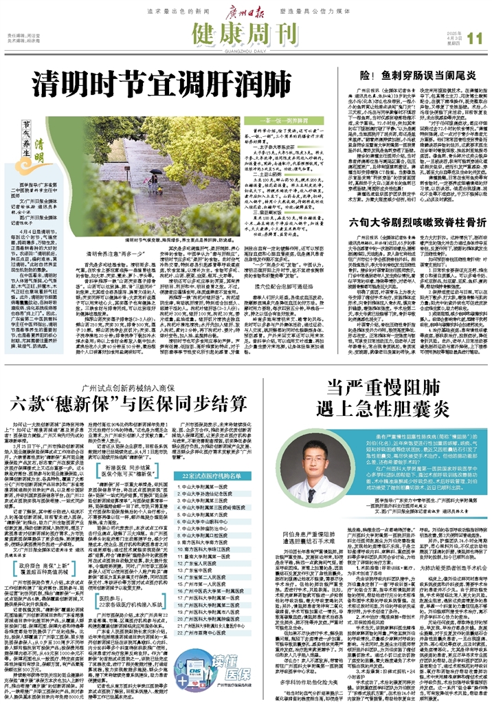 广州日报健康周刊 A11六款“穗新保”与医保同步结算 周洁莹2025-04-03 2 2025年04月03日 星期四