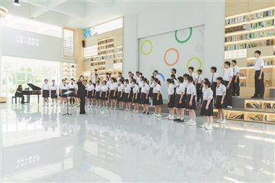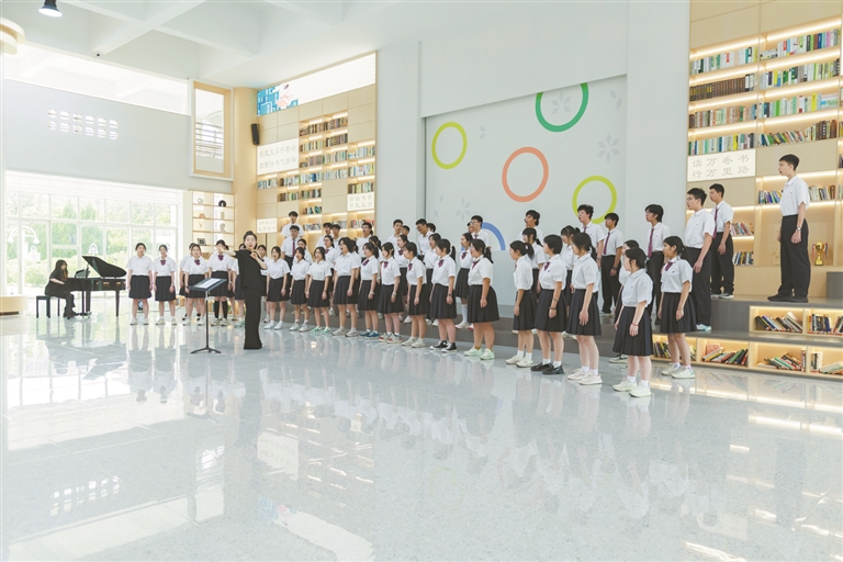 记者在现场看到,该校合唱团当天在学校大堂排练曲目《锦瑟》,随后还在教室里合唱了《海阔天空》。该校音乐教师、合唱团负责人邵宁宁告诉记者,合唱团在 2020年被评为高水平团队。“合唱是学校的强项,参与的学生都是普通生,他们凭着对音乐的热爱和兴趣加入合唱团。合唱让他们变得自信、收获快乐,得以从学习压力中释放和舒缓情绪。”