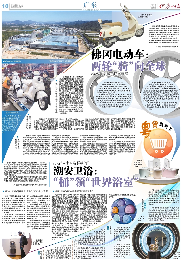- 潮安卫浴:“桶”领“世界浴室” 智能马桶变身“未来蛋”、“悬浮”酷炫会唱歌……3月26日至30日,2025潮安智能卫浴产业大会在潮州市举行,近300家领军企业齐聚潮安卫浴陶瓷品牌馆。记者探馆发现,2万平方米的展馆化作“未来卫浴样