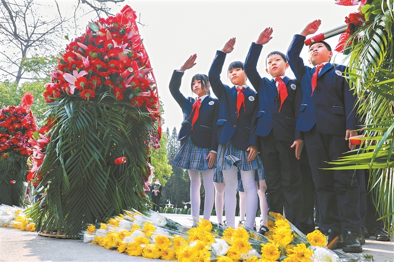 广州日报讯 (全媒体记者张丹羊 通讯员童恩)今年是中国人民抗日战争暨世界反法西斯战争胜利80周年。为缅怀抗战英烈,弘扬爱国精神,昨日,广州市十九路军淞沪抗日阵亡将士陵园管理中心举行“清明祭英烈”祭扫活动。来自广州市天河区消防救援大队、十九路军淞沪抗日历史研究会、广东省航空联谊会、天河区先烈东小学等单位的150余名代表参加了活动。