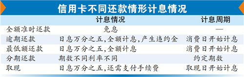 “准时全额还款就能享受免息;未准时全额还款,则会被收取利息,计息周期是从消费日起息而非还款日后起息,日息多数为万分之五,对应年化利率为18.25%。”资深信用卡观察人士董峥特别提醒,如果只还部分款,大部分信用卡在逾期后都是按照当期账单的全额来计算利息,而并非是未还金额。