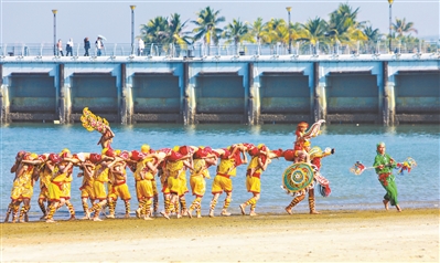起源于明末清初的“人龙舞”,作为国家级非物质文化遗产代表性项目,享有“东方一绝”的盛誉,常在海边、沙滩上演,承载着雷州人对风调雨顺、出海平安、丰收的祈愿。王宏伟,这位湛江人龙舞艺术团团长、东海人龙舞第六代传承人,带着自己的两个儿子一同参演,父子三人携手,让这传承百年的技艺薪火相传。湛江人龙舞艺术团每年都会精心组织4至6次“非遗进校园” 活动。王宏伟满怀期待地说:“我盼望着不久的将来,人龙舞能像英歌舞一样大放异彩,广受欢迎。”