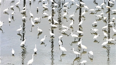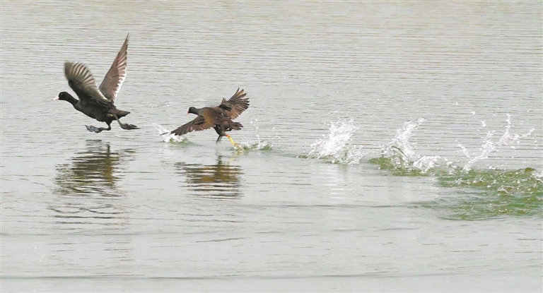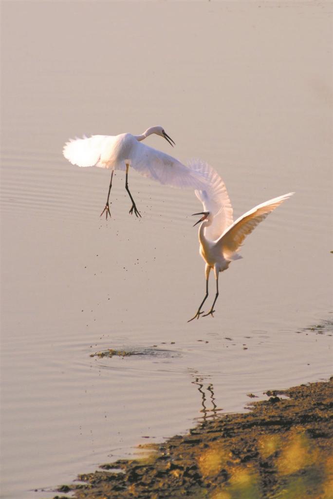 近日,洪梅镇洪屋涡水道两岸迎来了候鸟的热情回归。这里水网密布、生态良好,是水鸟们栖息繁衍的天堂。位于洪梅的金色水乡稻田公园也悄然上演着一场春日候鸟盛会:白鹭在田埂间飞舞,如音符跳跃于绿野之间;绿头鸭成群结队,在水面悠游追逐,不时展翅舞动,演绎一支支优雅的“华尔兹”。