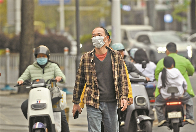 禅城市区灰霾较严重,不少市民戴上了口罩。