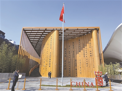 中国馆共设“天人合一”“绿水青山”“生生不息”三个展区,旨在展示中国传统生态智慧,展现中国绿色发展理念,推动中外文明交流互鉴和民心相通。其中,近距离对比展示由中国嫦娥五号、嫦娥六号探测器采集的月球正面和背面土壤样品,以及“蛟龙”号深潜体验舱、新一代人形机器人、以“二十四节气”为主题的大型多媒体动态影像、数字化动态长卷《耕织图》等展项是中国馆的亮点。