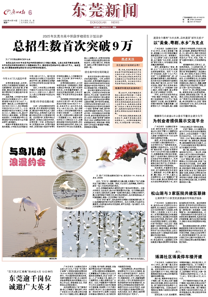- 与鸟儿的浪漫约会 文、图/广州日报全媒体记者卢政 通讯员张小玲、陈桂培、梁勇新、周珊珊 近日,“打鸟”这一摄影圈热词火爆出圈,长焦镜头下的飞羽瞬间成了春天最动人的注脚。其实,不必远行,在洪梅镇,同样可以感受一场