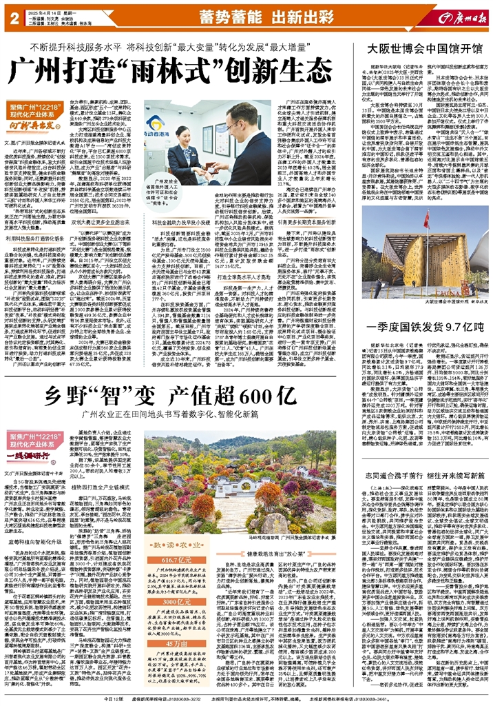 - 广州打造“雨林式”创新生态 文、图/广州日报全媒体记者武威 近年来,广州各领域不断打造优质科技服务,持续优化“创投贷保服”科技金融体系,放大科技信贷风险补偿效应,出台科技保险专项支持政策,健全科技金融服务网络;同时,