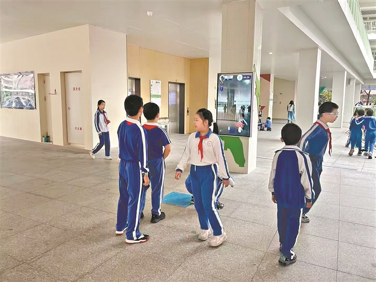 在新沙小学,智能设备已经进驻操场、体育馆、游戏馆等运动场地。学校的AI智慧互动屏显示学生的姓名、班级和运动量,再运用“用运动量击败校长可与校长共进午餐”的激励机制,激发学生的挑战热情。“我希望自己的名字出现在排名榜上面。”就这样,短暂的课间也成了孩子们比一比、玩一玩的欢乐时光。