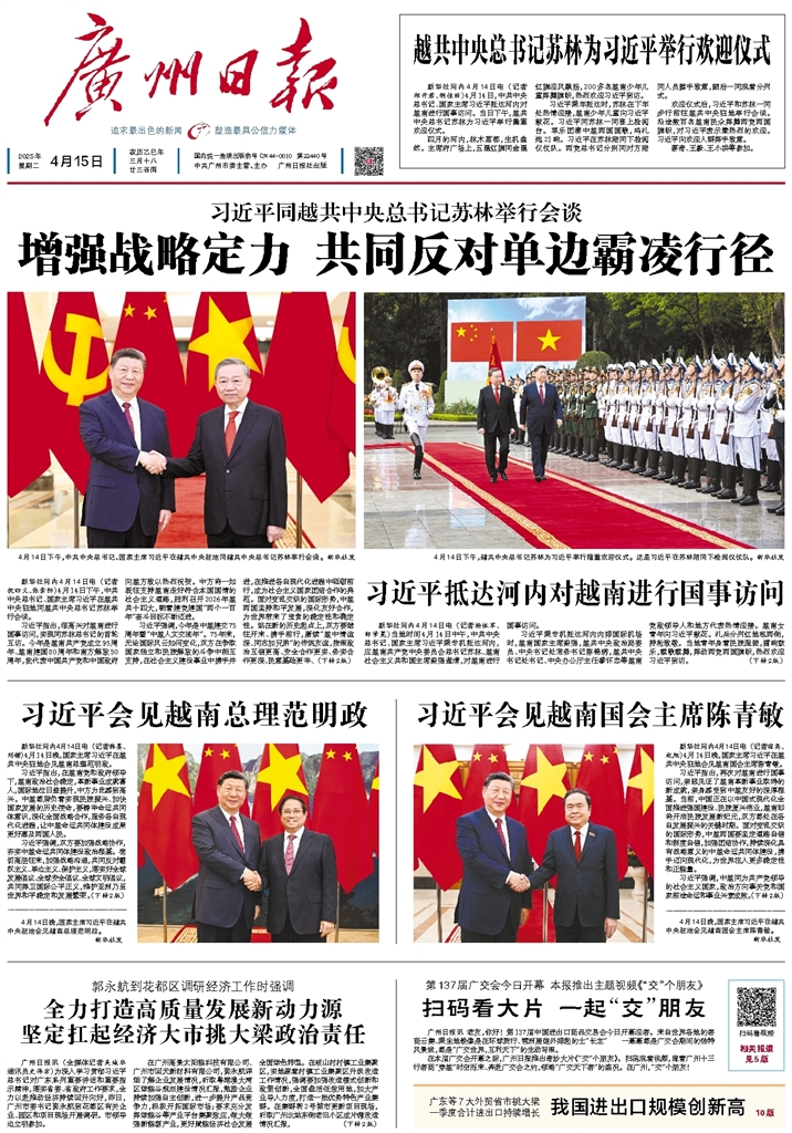 广州日报头版 A1习近平会见越南总理范明政 韩墨、刘锴2025-04-15 2 2025年04月15日 星期二